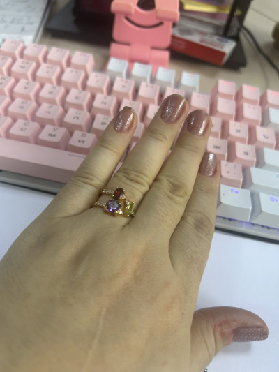 Несмыкаемое колечко с миксом камней смотрится модно ,изящно.Очень долго ждала скидки на него,на работе сразу его заметили,спасибо!