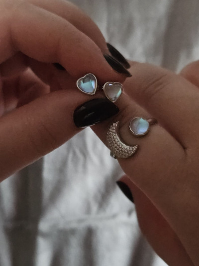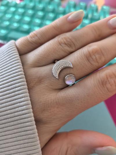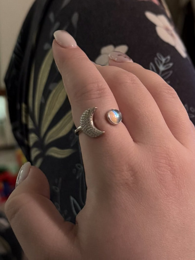 Очень долго искала кольцо для ежедневной носки - не громозкое, но оригинальное. Камень алпанит зацепил глаз, а концепция луны и полумесяца выглядит романтично и волшебно. Не смогла устоять перед ним, теперь любимое)