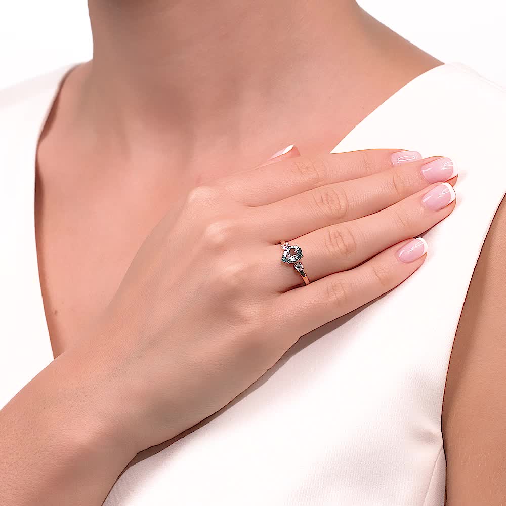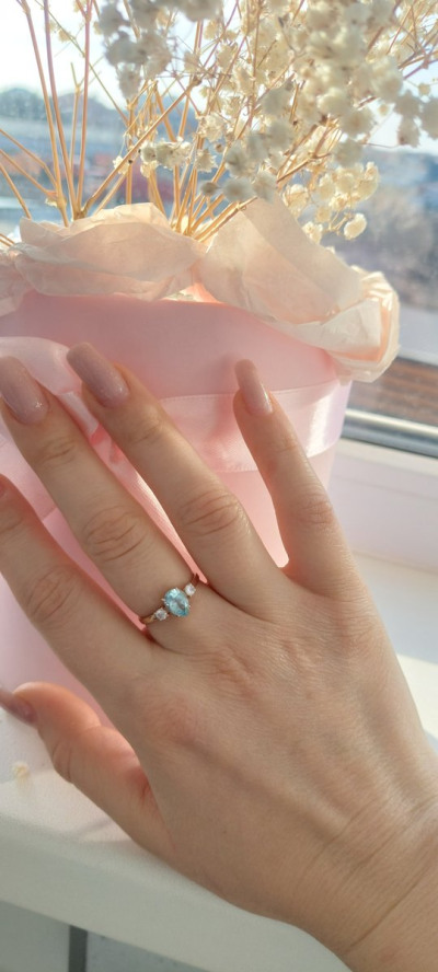 В редких случаях характеристики украшения или упаковка могут иметь отличия от представленных на фото или в описании.Кольцо с 1 топазом скай природным, тип огранки Б;