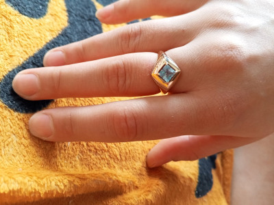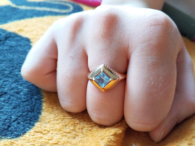 В редких случаях характеристики украшения или упаковка могут иметь отличия от представленных на фото или в описании.Кольцо с 1 топазом скай природным, тип огранки Б;
