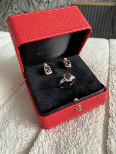 - ВставкаФианит, Кварц дымчатый природный