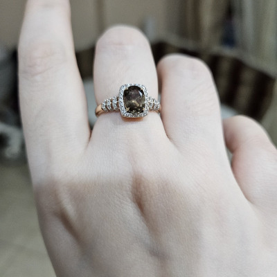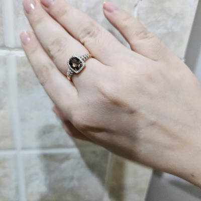 В редких случаях характеристики украшения или упаковка могут иметь отличия от представленных на фото или в описании.Кольцо с 1 кварцем дымчатым природным, тип огранки Б;