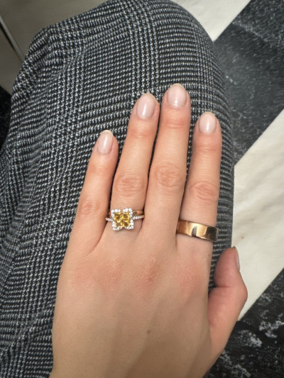 Увидела это колечко в магазине и сразу же заказала свой размер.Очень красивое и удобное колечко.Цитрины прекрасны.