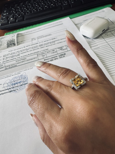 Кольцо с цитринами очень красивое, яркое. Хорошее обслуживание.