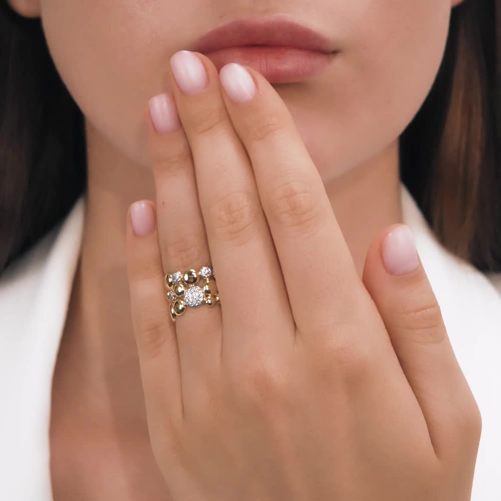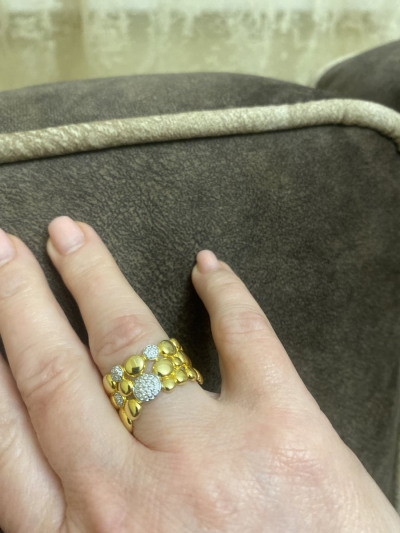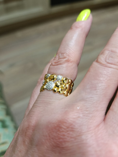 Кольцо под жёлтое золото, широкое с фианитами, смотрится круто