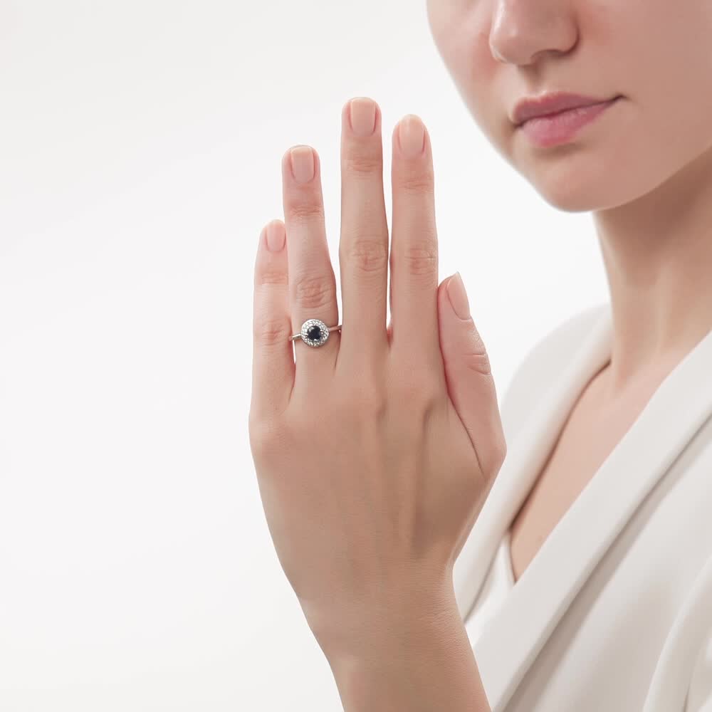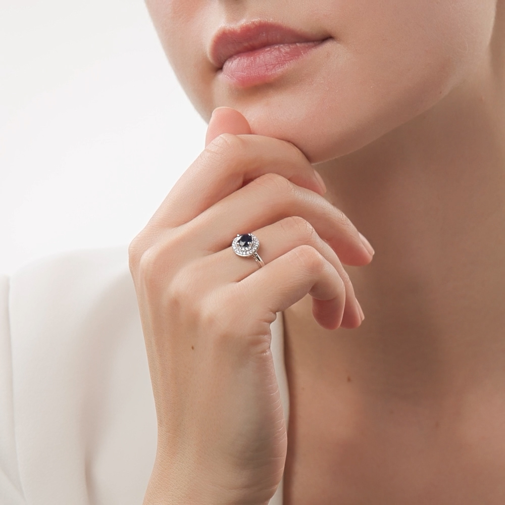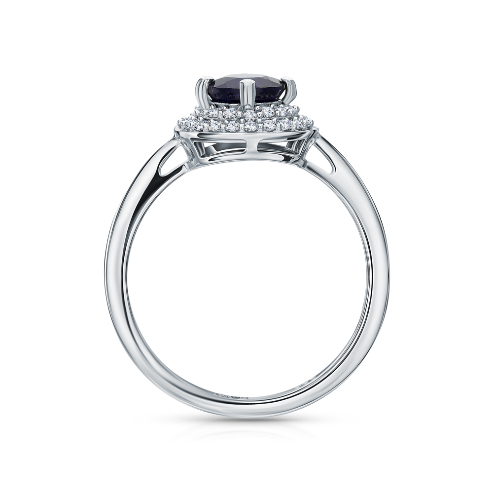 Серебряное кольцо с фианитами и сапфирами природными