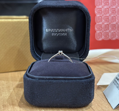 Кольцо с 1 бриллиантом природным, 0.08 карат, огранка круг 57 граней, цвет 3, чистота 6, тип огранки А;