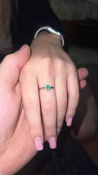 Прекрасное кольцо, изумруд выделяется , бриллианты эстетично его дополняют . Девушке очень понравилось..