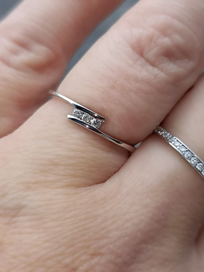 • Кольцо с 3 бриллиантами выращенными, 0.06 карат, огранка круг 57 граней, цвет 2, чистота 5, тип огранки А;