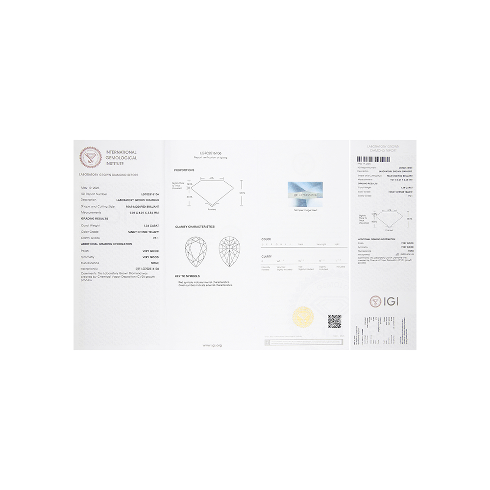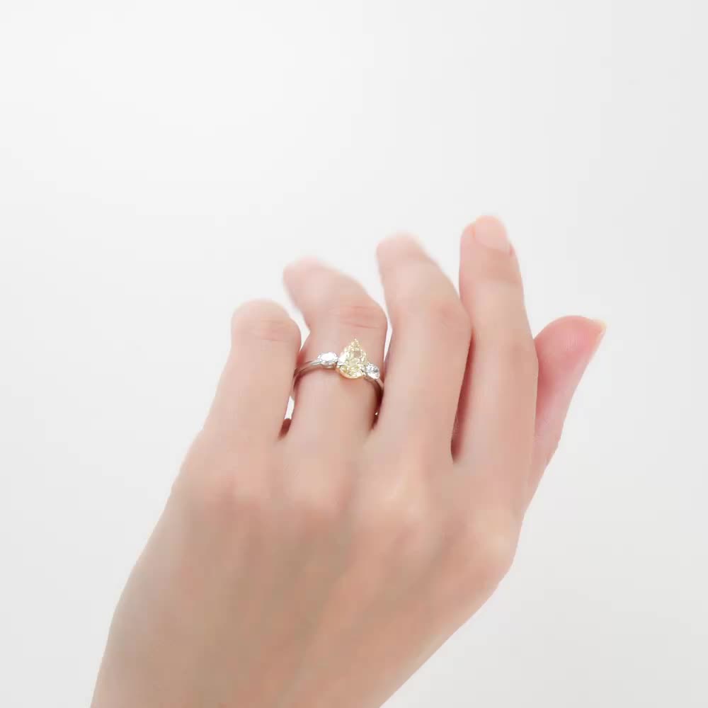 Кольцо с 1 бриллиантом выращенным, 1.6 карат, огранка груша 56 граней, цвет Желтый, чистота 5, тип огранки А;
