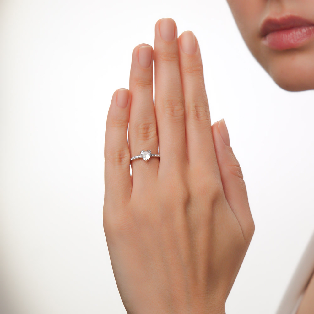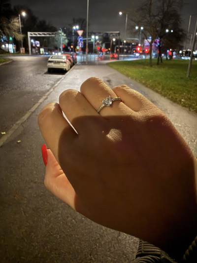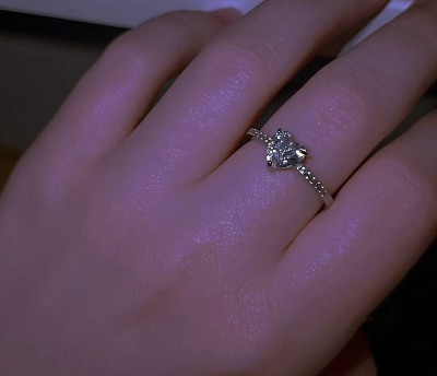 Осталась очень довольна кольцом, смотрится на пальце очень изящно, мило, выбрали с молодым человеком его в качестве помолвочного кольца