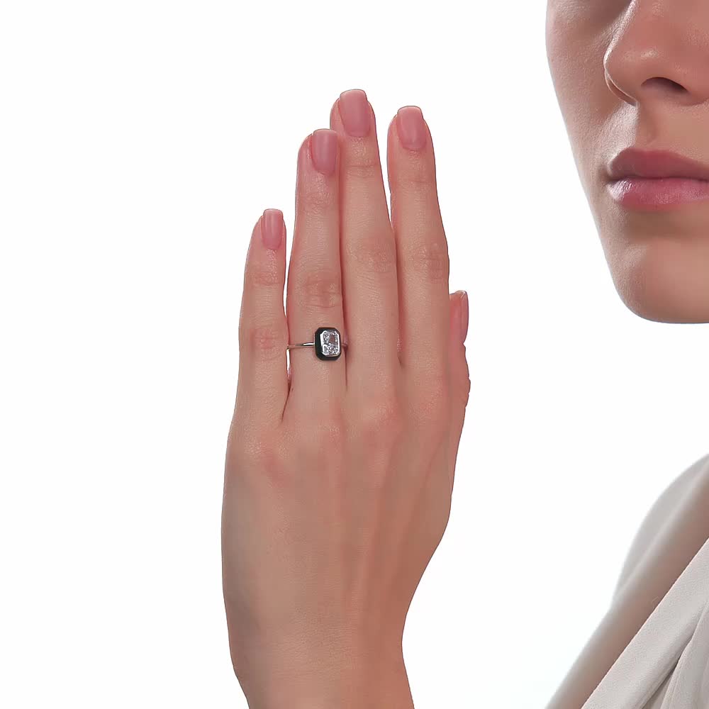 Серебряное кольцо с эмалью и фианитами