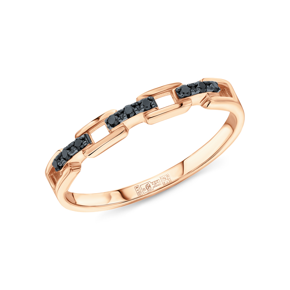 Кольцо с 9 бриллиантами черными природными облагороженными, 0.06 карат, огранка круг 57 граней, цвет 7, чистота 6, тип огранки А;