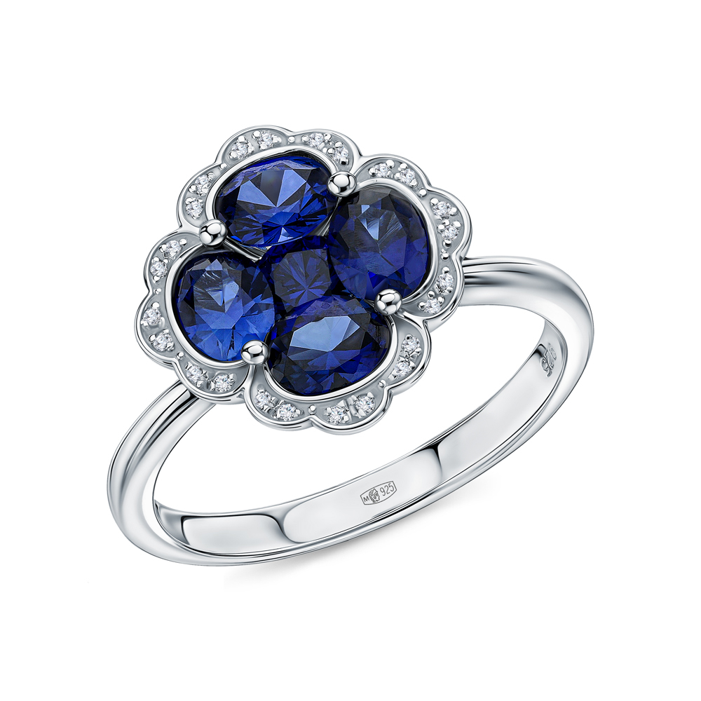 Серебряное кольцо с фианитами и корундом