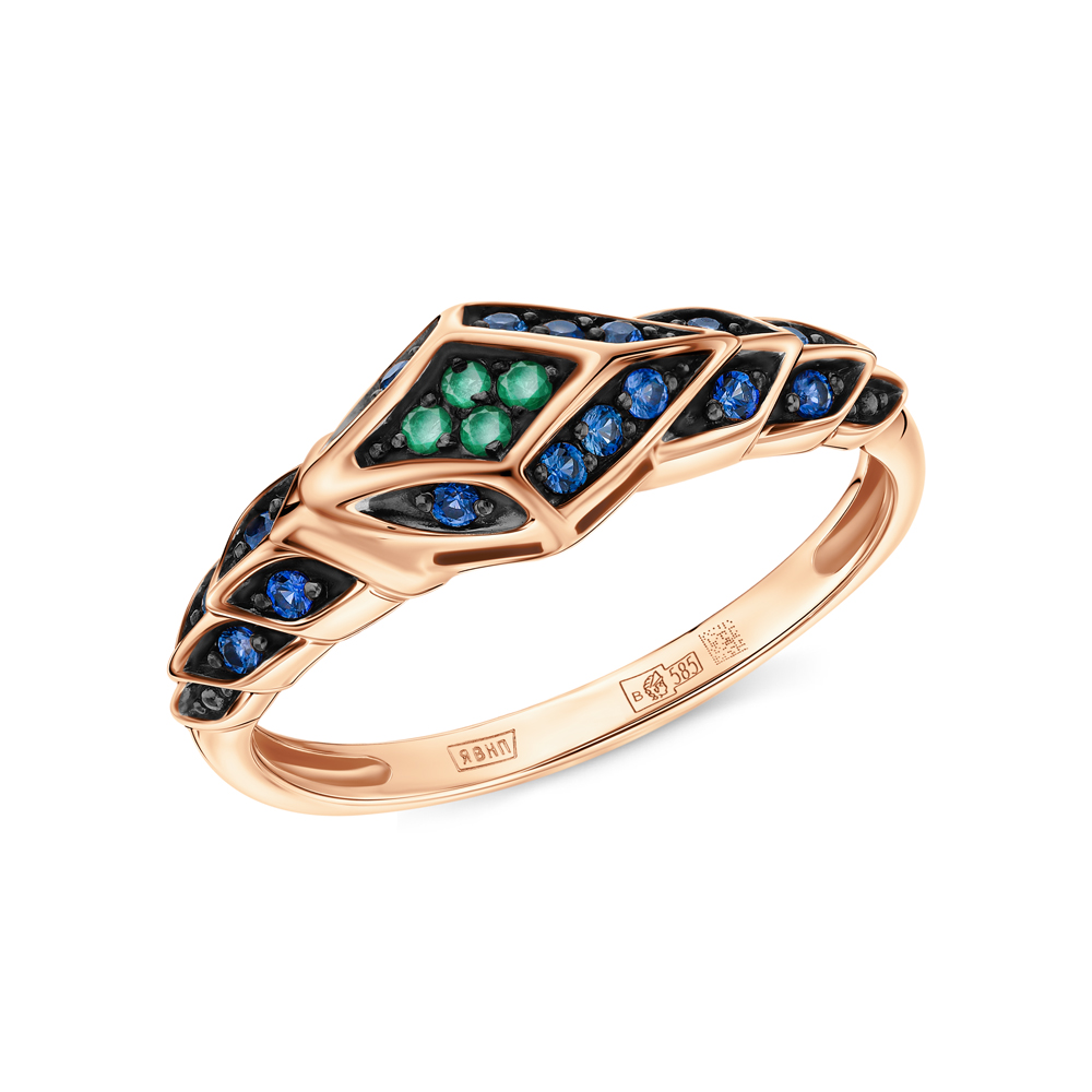 Золотое кольцо с изумрудами природными и сапфирами природными