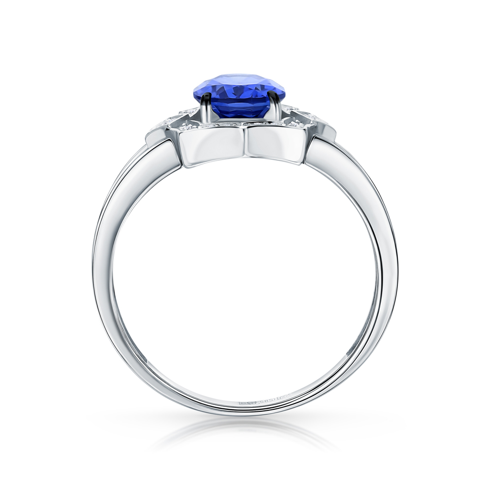 Золотое кольцо с бриллиантами природными и сапфирами выращенными