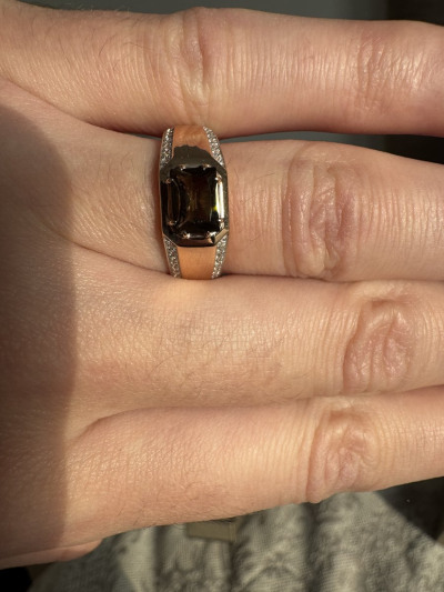 В редких случаях характеристики украшения или упаковка могут иметь отличия от представленных на фото или в описании.Кольцо с 1 кварцем дымчатым природным, 0.78 карат;
