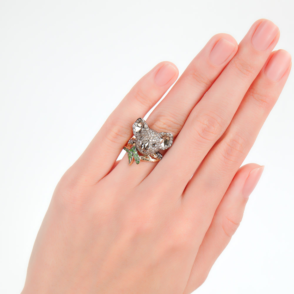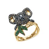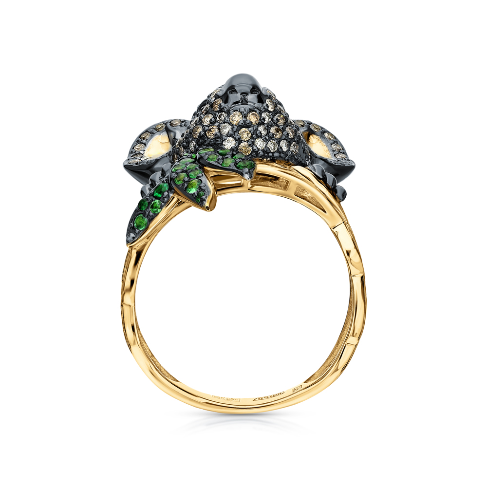 Золотое кольцо с бриллиантами и бриллиантами чёрными природными и гранатами природными