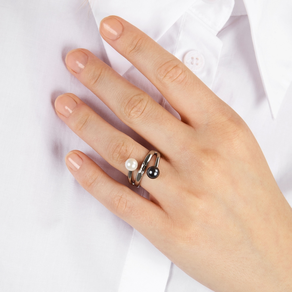 Кольцо из коллекции бижутерии KARL LAGERFELD Pearl. Яркий дизайн изделия: вставка из искусственного жемчуга двух цветов, перламутрового и чёрного на стальном корпусе цвета серебра, переосмысливает визульные коды бренда, следуя неповторимому дерзкому стилю кутюрье. Размер изделия 18. Гарантия 14 дней.