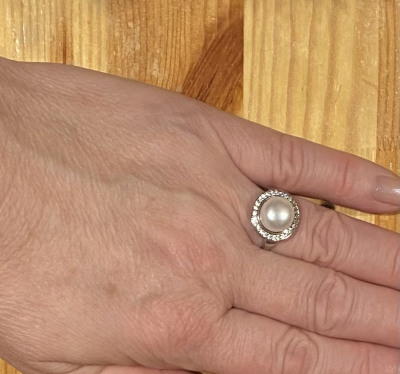 Серебряное кольцо с жемчугом природным и фианитами