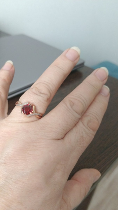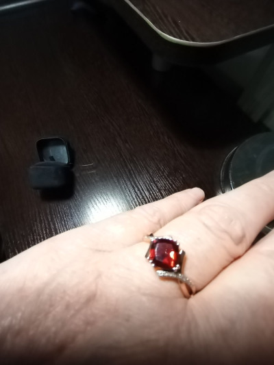 Очень красивое кольцо. Гранат яркий, сверкает на солнце всеми гранями. Рекомендую к покупке..
