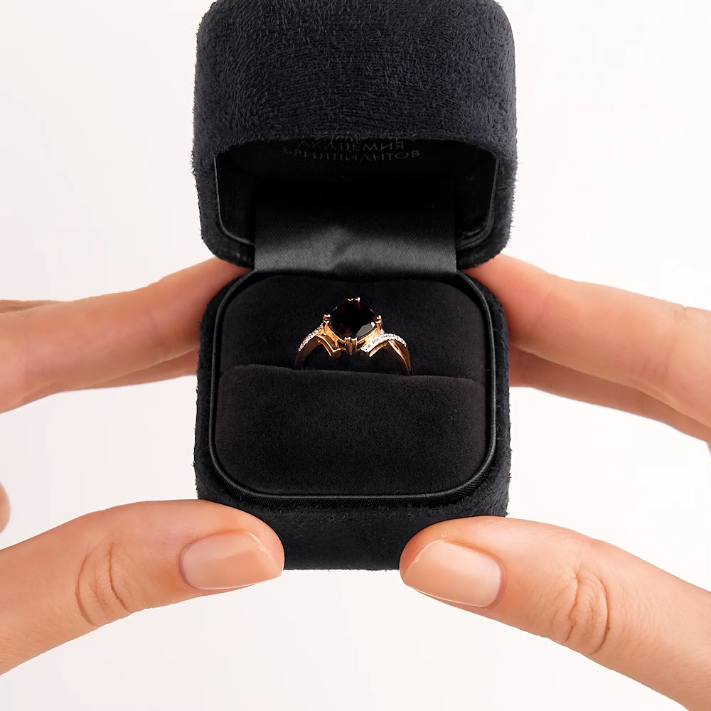 Золотое кольцо с бриллиантами природными и гранатами природными