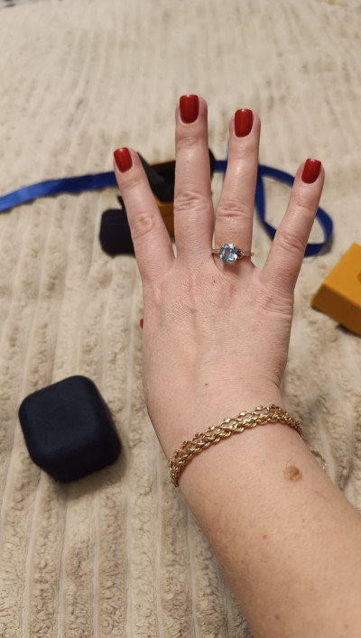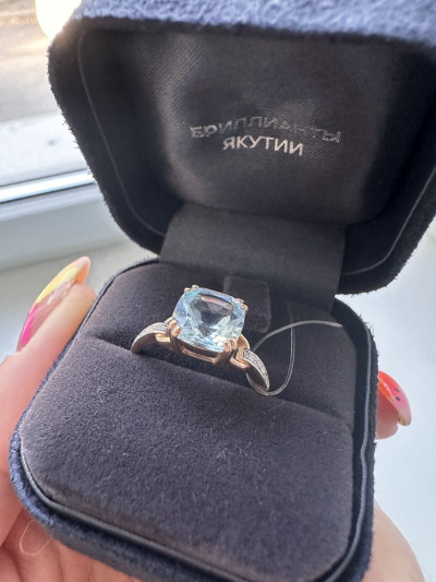 Кольцо смотрится классно, топаз блестит супер и бриллиантики