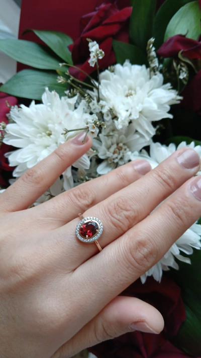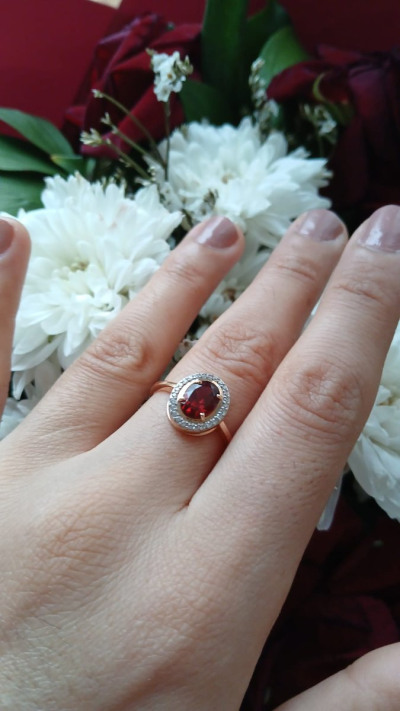 В редких случаях характеристики украшения или упаковка могут иметь отличия от представленных на фото или в описании.Кольцо с 1 гранатом природным, тип огранки Б;
