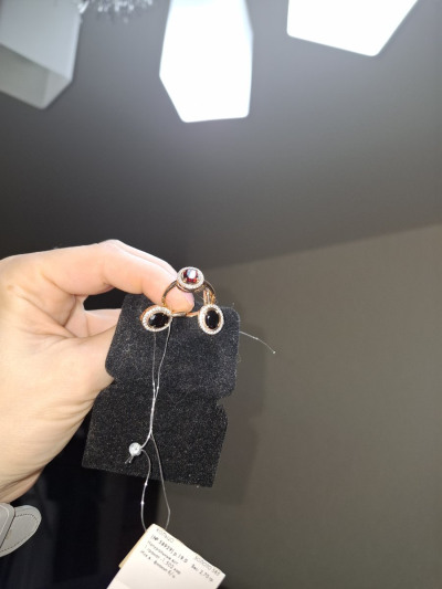 Купила серьги и к ним через неделю купила кольцо. Комплект просто превосходно смотрится, но есть одно но. Камень кольца на порядок светлее это сразу бросается в глаза. Разные караты камней
