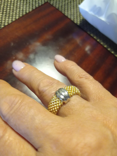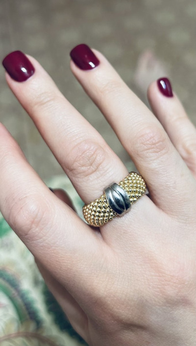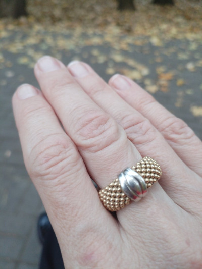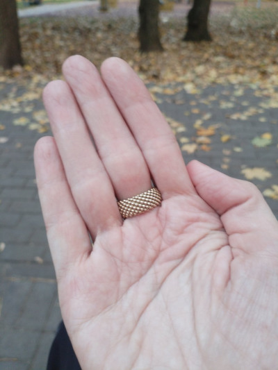 Кольцо красивое, объемное, подвижное. Маломерит приблизительно на пол размера. Но с учетом прошлых отзывов о том, что оно разнашивается со временем, оставила.