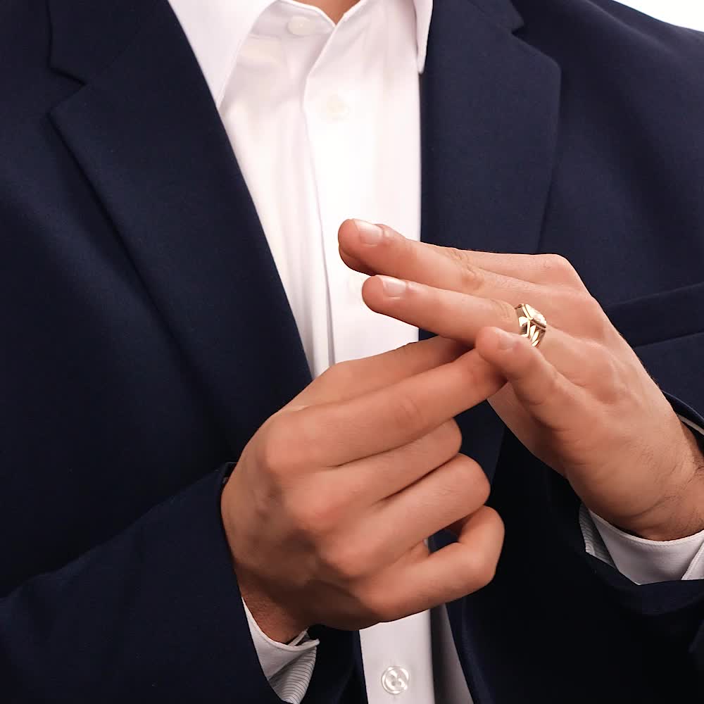 Кольцо пришло качественно упаковано в заявленное время и дату. Коробочка шикарна, замок работает. Колечко красивое без изъянов, выглядит дорого. Муж доволен.