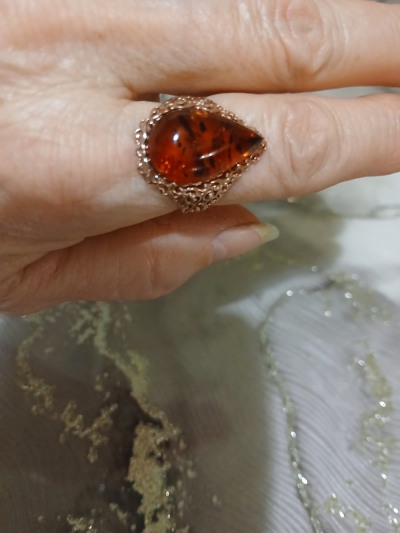 Серебряное кольцо с янтарем природным