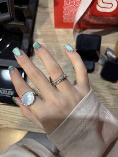 Прекрасная дорожка. Не крупная и не мелкая. Красиво как самостоятельное кольцо и в паре с другими.