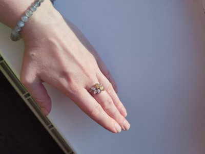 Очень красивое кольцо с цитрином. Купила в комплекте с серёжками. Цитрин- камень солнечных знаков. Приносит обладателю процветание и изобилие.