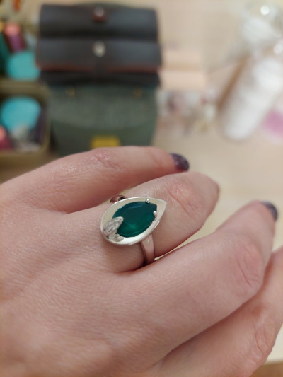 Очень понравилось колечко. Форма капля - оригинальна. Камень не малыш.