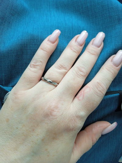 Милое кольцо, очень удобное. Одела, и не чувствую. Советую.