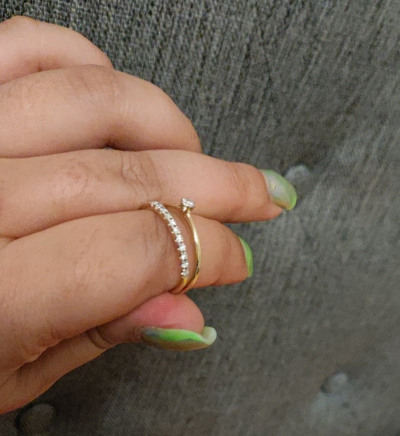 Идеальный комплект из колец, можно комбинировать и носить как угодно. Отлично подошел к уже имеющемуся помолвочному кольцу с изумрудом и бриллиантами.