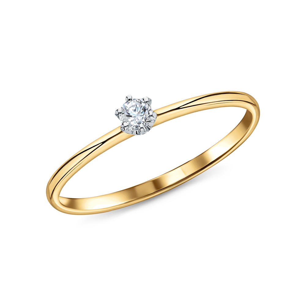 Кольцо с 1 бриллиантом, 0.08 карат, огранка круг 57 граней, цвет 3, чистота 6, тип огранки А;