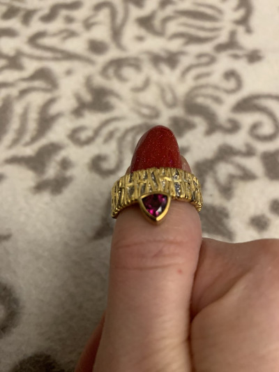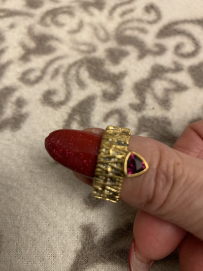 Серебряное кольцо с родолитом и позолотой. Очень оригинальное. Сидит достаточно плотно. Если есть склонность к отекам, лучше брать на пол размера больше. Отличный подарок себе любимой❤️