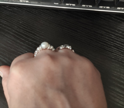 Очень гладенькое, приятное на ощупь, ничего не мешает, не цепляется, несмотря на вполне себе глобальную жемчужину. Обожаю витое серебро от Санлайт. Конечно, это колечко надо брать в комплекте с серьгами, смотрится великолепно. Оттенки жемчуга могут сильно отличаться, учтите. Дизайн оригинальный, отлично подошёл к моему возлюбленному кольцу Ом от Санлайт, хотя они будут на разных руках. Никогда не было у меня жемчуга, считала его непрактичным и не подходящим мне по стилю. Но вот подарили мне колье, и к нему подобрала комплект. Радости получила больше, чем от бриллиантов! Просто респект Санлайт! 🙏