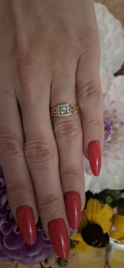 Кольцо,хорошего качества, посадка камней достаточно крепкая,не цепляет за одежду, главный плюс!Для меня шинка конечно хлиповатая,а так в целом покупкой осталась довольна!Спасибо!