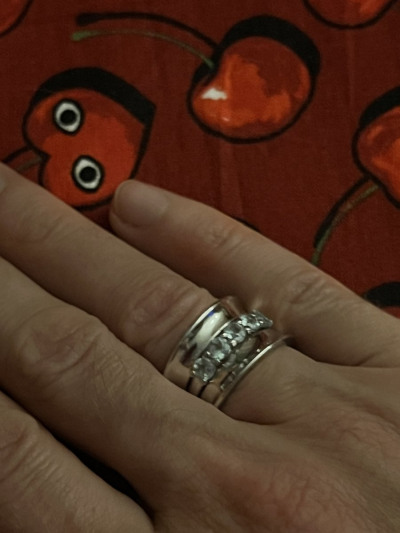 Серебряное кольцо, с родиевым покрытием, состоящее из двух половинок. Интересный дизайн, Можно носить бортиками как вовнутрь, так и наружу.