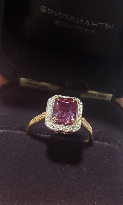 Украшение дополнено синтетическим александритом весом 1.816 карата, с огранкой типа Б. Это уникальное кольцо станет прекрасным подарком или превосходным дополнением к вашей коллекции украшений.- Артикул99475
