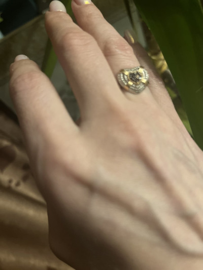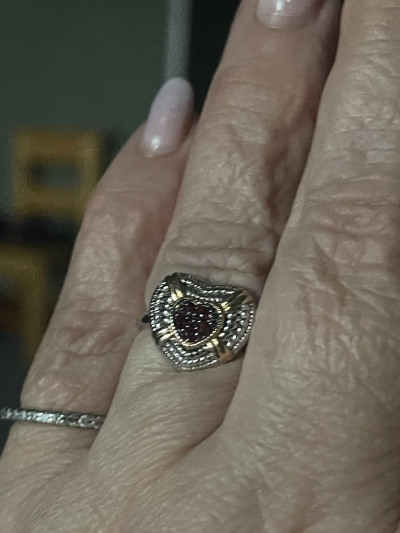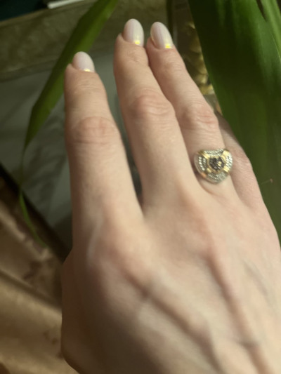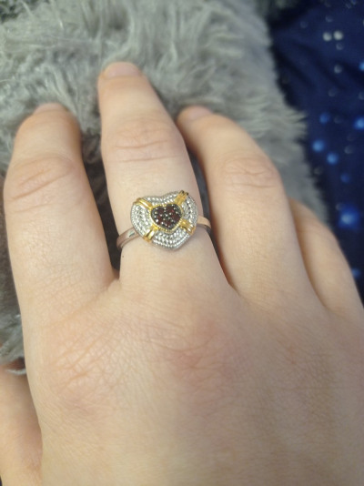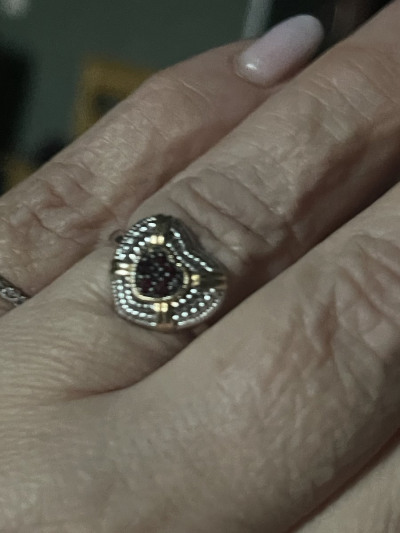Кольцо в виде сердца с природными гранатами и фианитами очень красивое , смотрится стильно, привлекает внимание Я очень довольна, как одела в магазине так и не снимаю