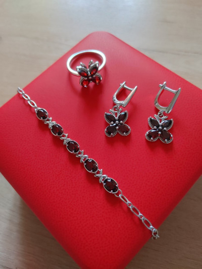 Очень интересная новинка от Sunlight "Гранатовые Бабочки". Колечко миниатюрное,камень насыщенного цвета,тёмный,очень красивый. Серьги в коплект,тоже очень понравились,подойдут на тонкую мочку. Подбирала всю эту красоту под браслет Sunlight,вполне симпатичный комплект получился)) Спасибо,за очередную сверкающую красоту♡ Хорошо,что есть положение Sunlight. Очень удобно делать покупки. Спасибо!