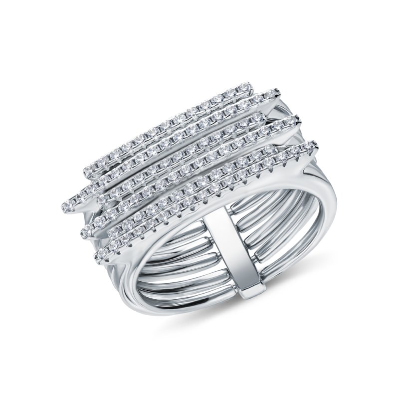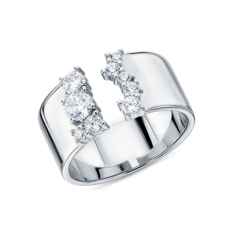 Кольцо с 1 бриллиантом природным, 0.02 карат, огранка круг 57 граней, цвет 3, чистота 6, тип огранки А; 24 бриллиантами природными, 0.07 карат, огранка круг 17 граней, цвет 2, чистота 2, тип огранки Б; Белое золото 585 пробы.